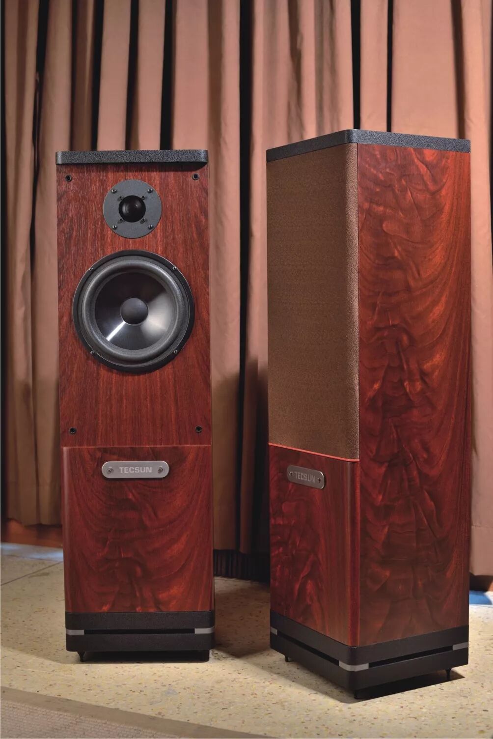而SP-909这对落地式音箱,前文已经提到它是用于代替SP-901的,德生在获得更好的思路之后随即对后者进行改良。SP-909和SP-901如出一辙,只是箱体外饰和若干设计有些区别,也多了个底座,喇叭单元也作了更新,让新箱子的频响更宽、低频下潜更深,解析力也有所提高,另外SP909高音及中音都可以进行增益调节。